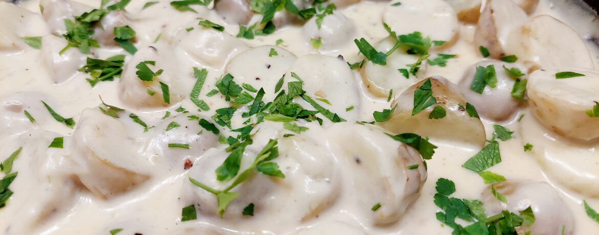 Zutaten (4 Personen): – 1 kg Drillinge – 6 EL Parmesan (gerieben) – 6 Knoblauchzehen – 1 TL Gemüsebrühepulver – etwas Muskatnuss – 3 EL Butter – 500 ml Milch – 200 ml Sahne – 1/2 TL Pfeffer – 2 TL Salz – 1 TL Petersilie (glatt & gehackt) Zubereitung:Die Drillinge waschen, trocknen und jeden […]
