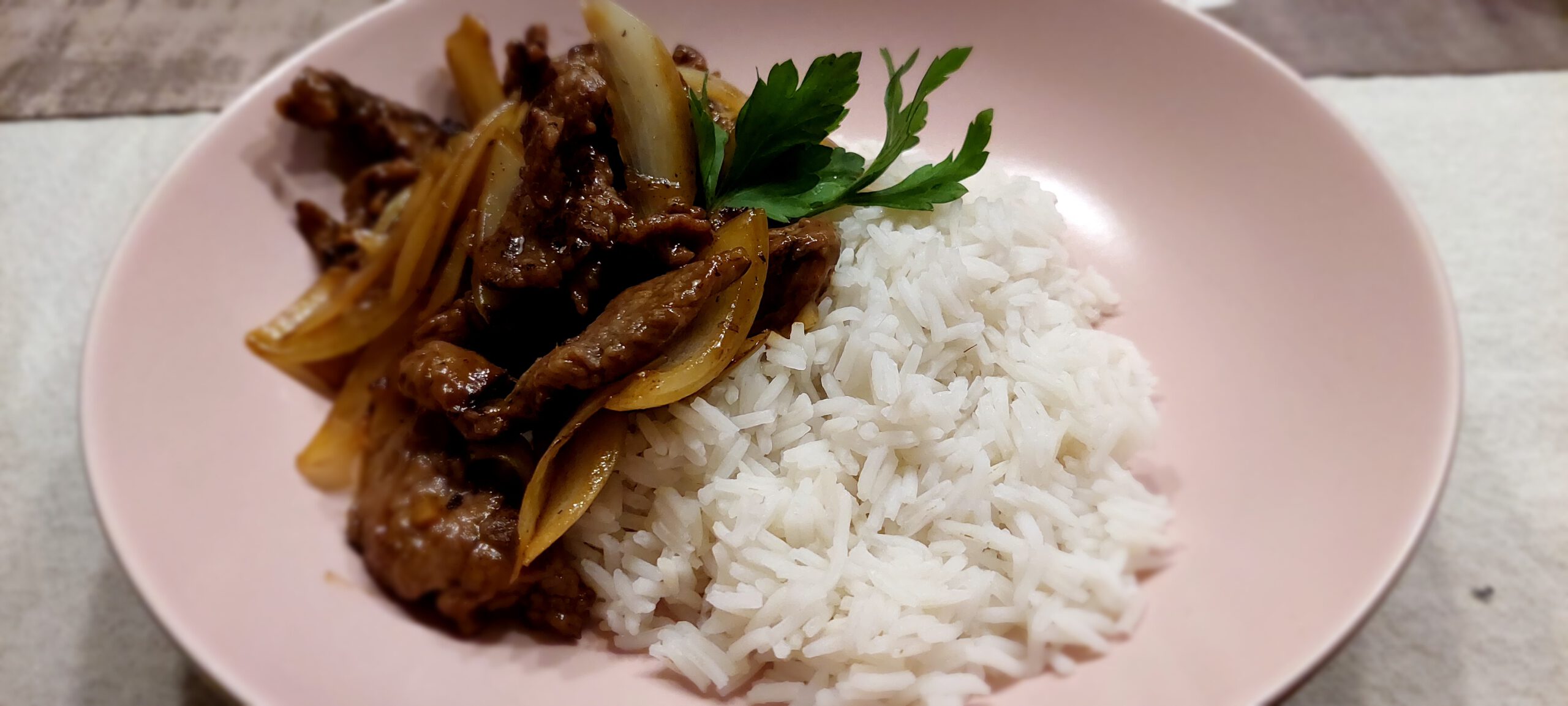Das fertige Zwiebel-Rindfleisch dann sofort servieren.